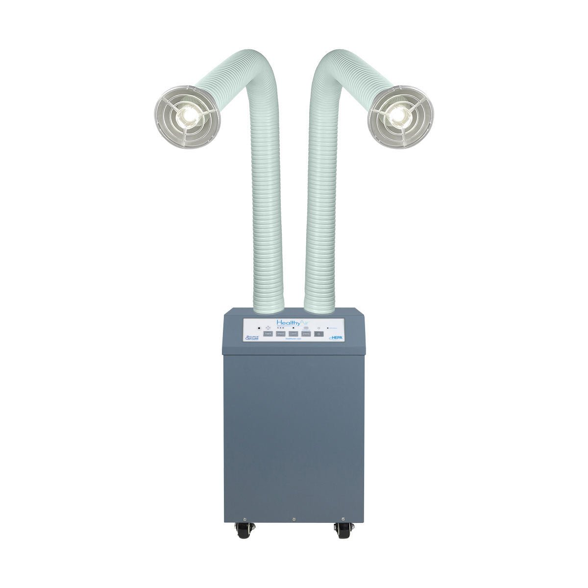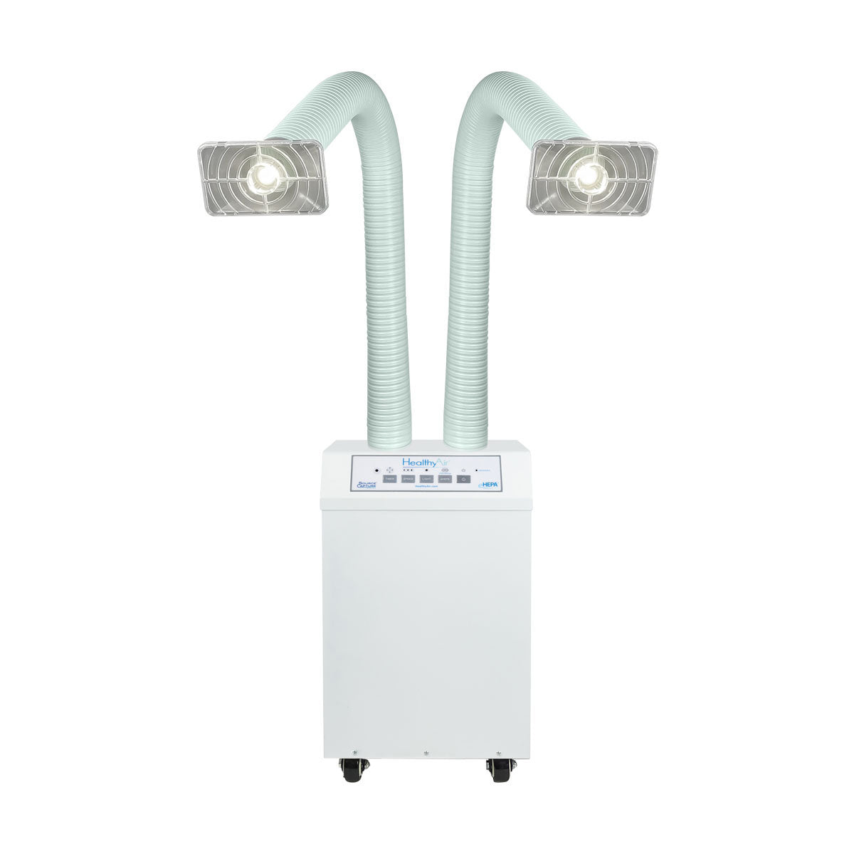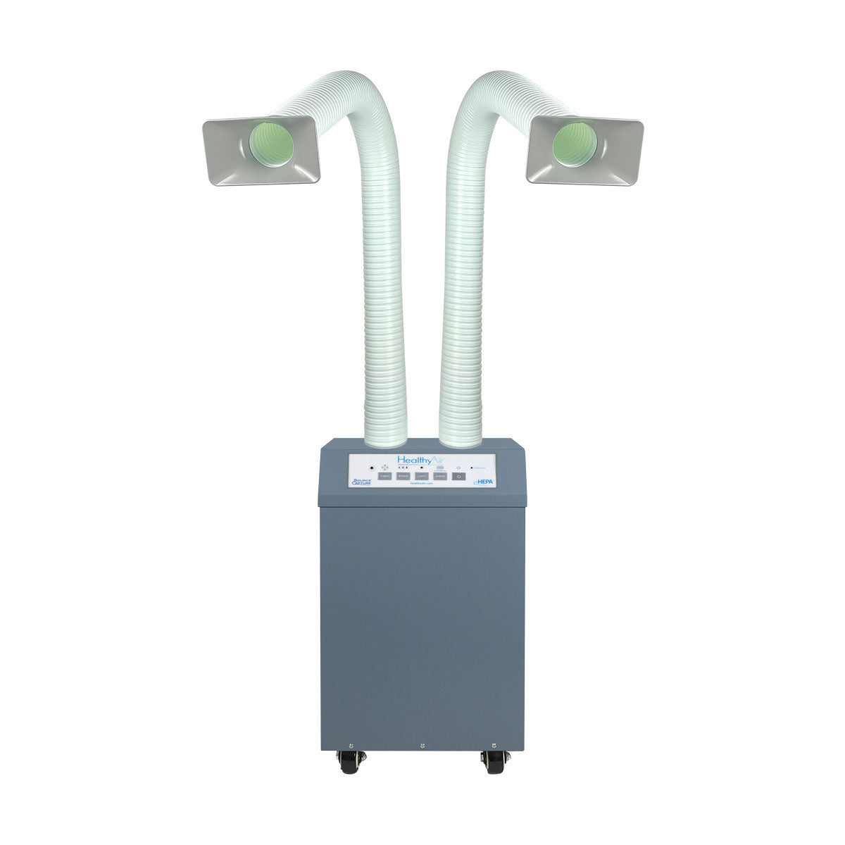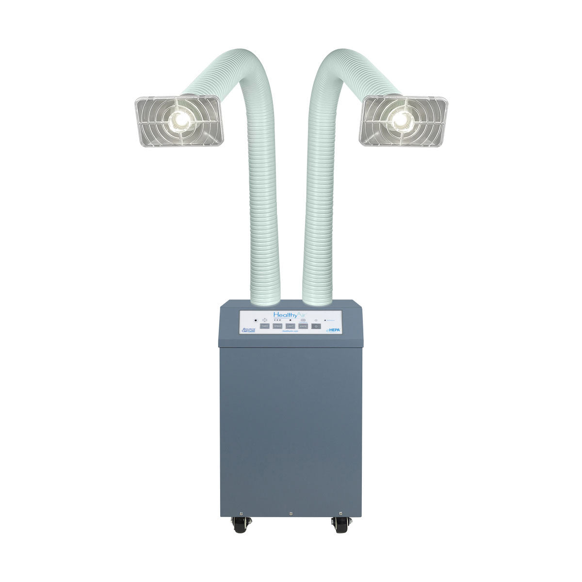 The HealthyAir Source Capture System Dual Station Air Purifier is engineered to extract airborne contaminants from the breathing zone to improve indoor air quality and reduce occupational hazard risks.