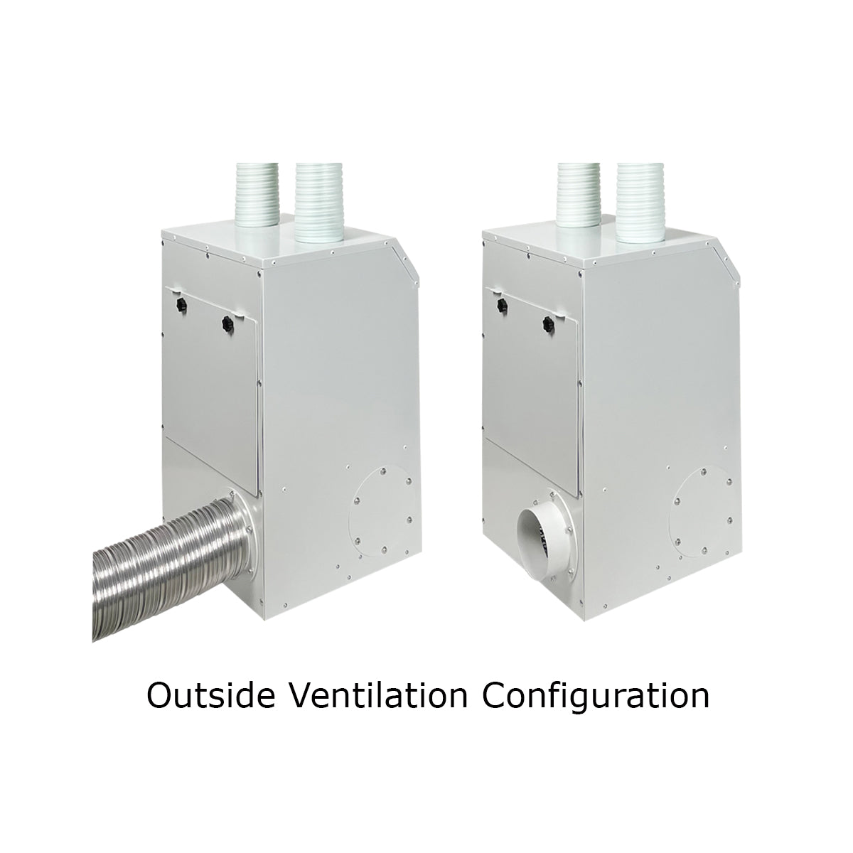The components required to setup the unit for Outside Venting come with the unit, as outlined in the manual. When configured for Outside Ventilation, the system is designed to take in contaminated air though the extraction hose, filter contaminants, and discharge treated air out of the facility via an exhaust duct connection to the 4” dia. outlet port of the unit.